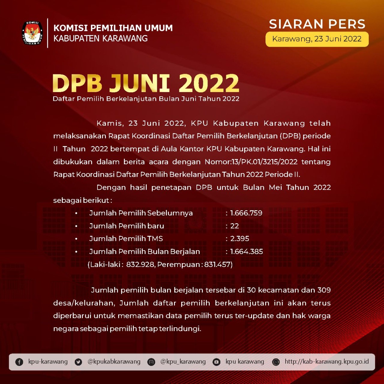 Daftar Pemilih Berkelanjutan Bulan Juni 2022 Kamis, 23 Juni 2022 00:00 421 DOWNLOAD DPB BULAN JUNI 2022 Bagikan: Dilihat 421 Kali.