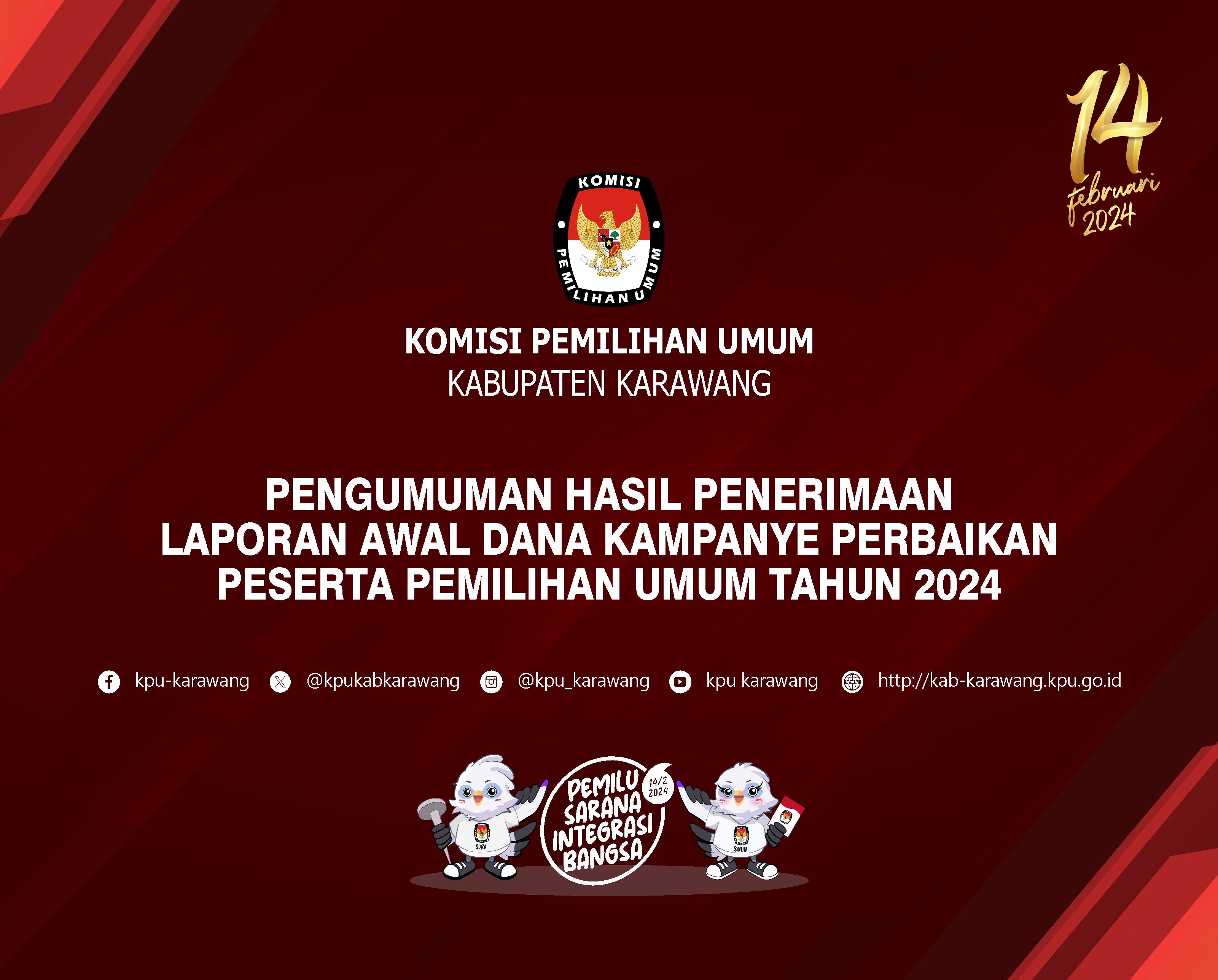 Berdasarkan Tanda Terima dan Berita Acara Penerimaan LADK Perbaikan Tahun 2024 di KPU Kabupaten Karawang disampaikan hasil penerimaan LADK Perbaikan sebagaimana terlampir dalam pengumuman.