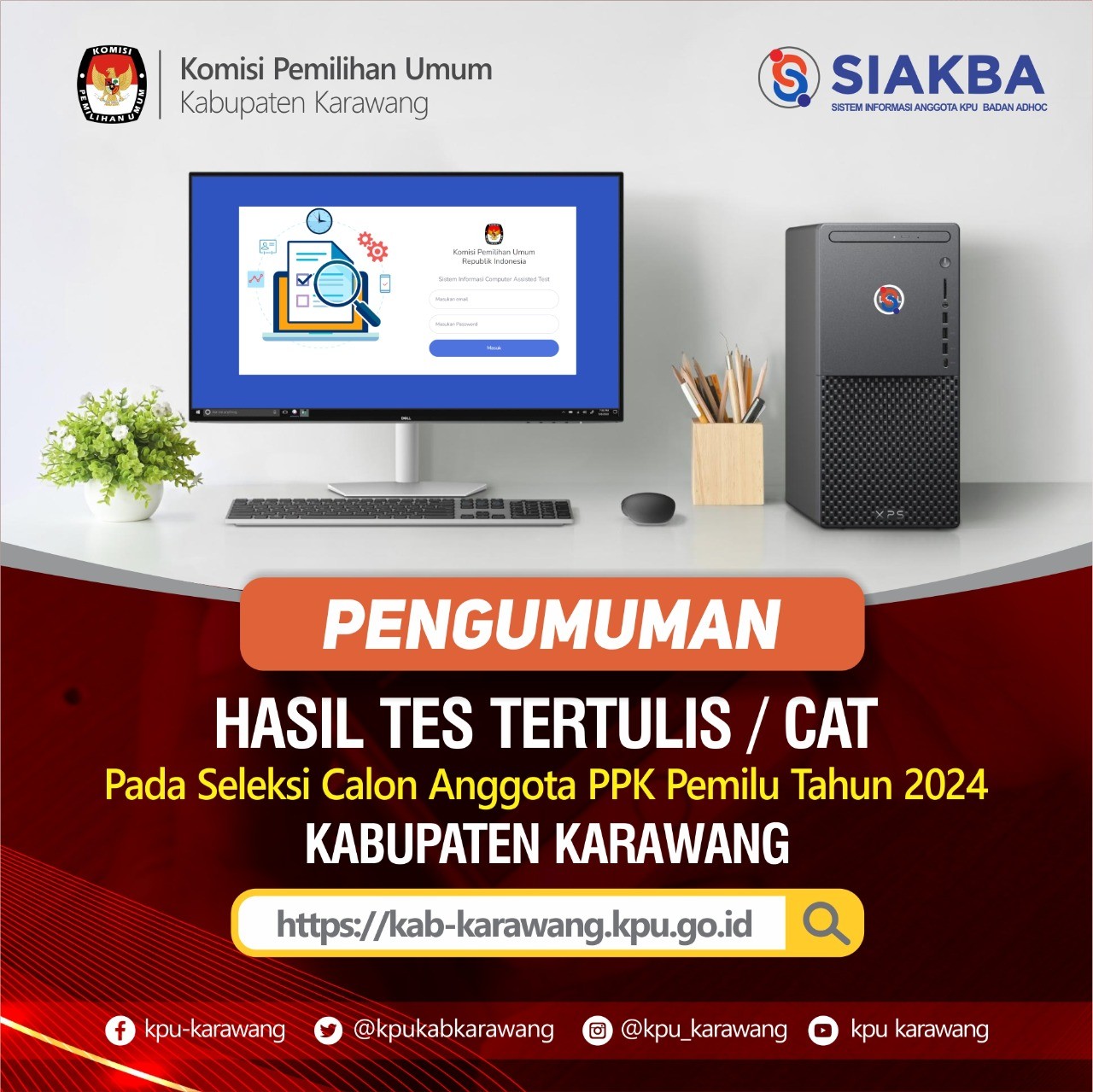 KPU Kabupaten Karawang menetapkan hasil seleksi tertulis calon Anggota Panitia Pemilihan Kecamatan (PPK) untuk Pemilu Tahun 2024 sebagaimana daftar terlampir.