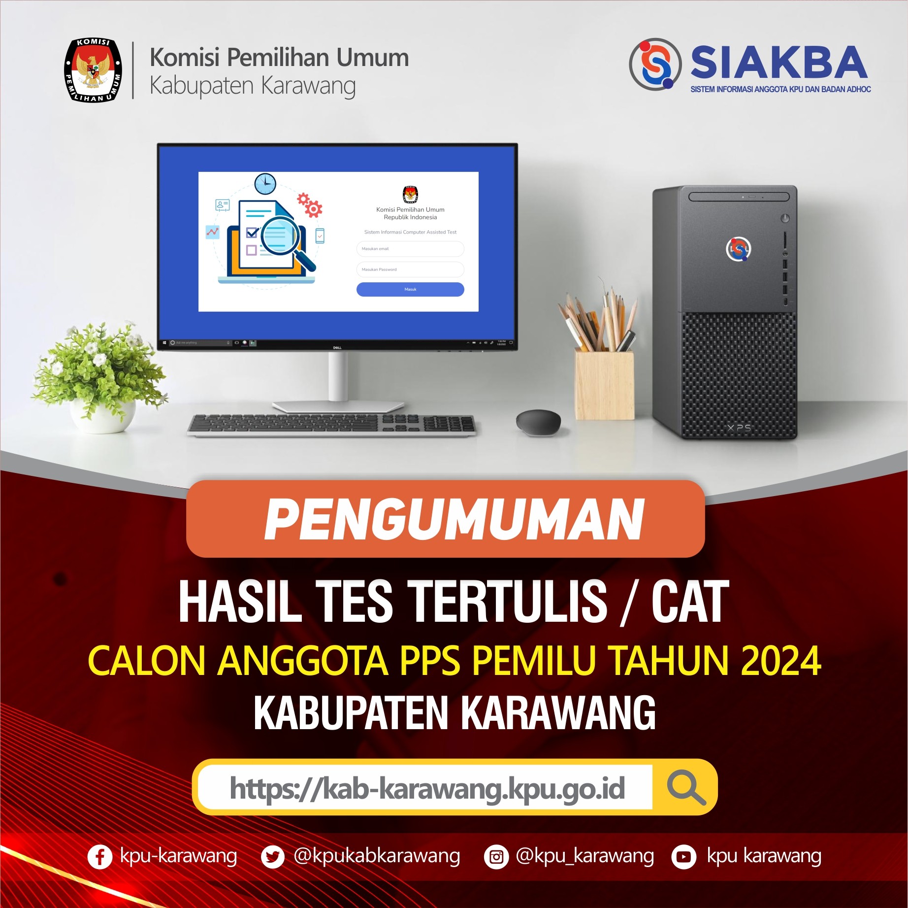 - KPU Kabupaten Karawang menetapkan hasil seleksi tertulis Calon Anggota Panitia Pemungutan Suara (PPS) untuk Pemilu Tahun 2024 sebagaimana daftar terlampir (dalam file unduhan)