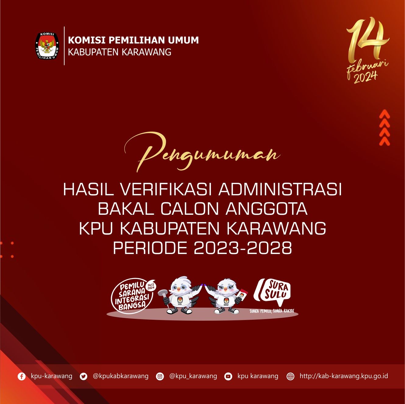 Pengumuman Hasil Verifikasi Administrasi Bakal Calon Anggota KPU Kab. Karawang 2023-2028