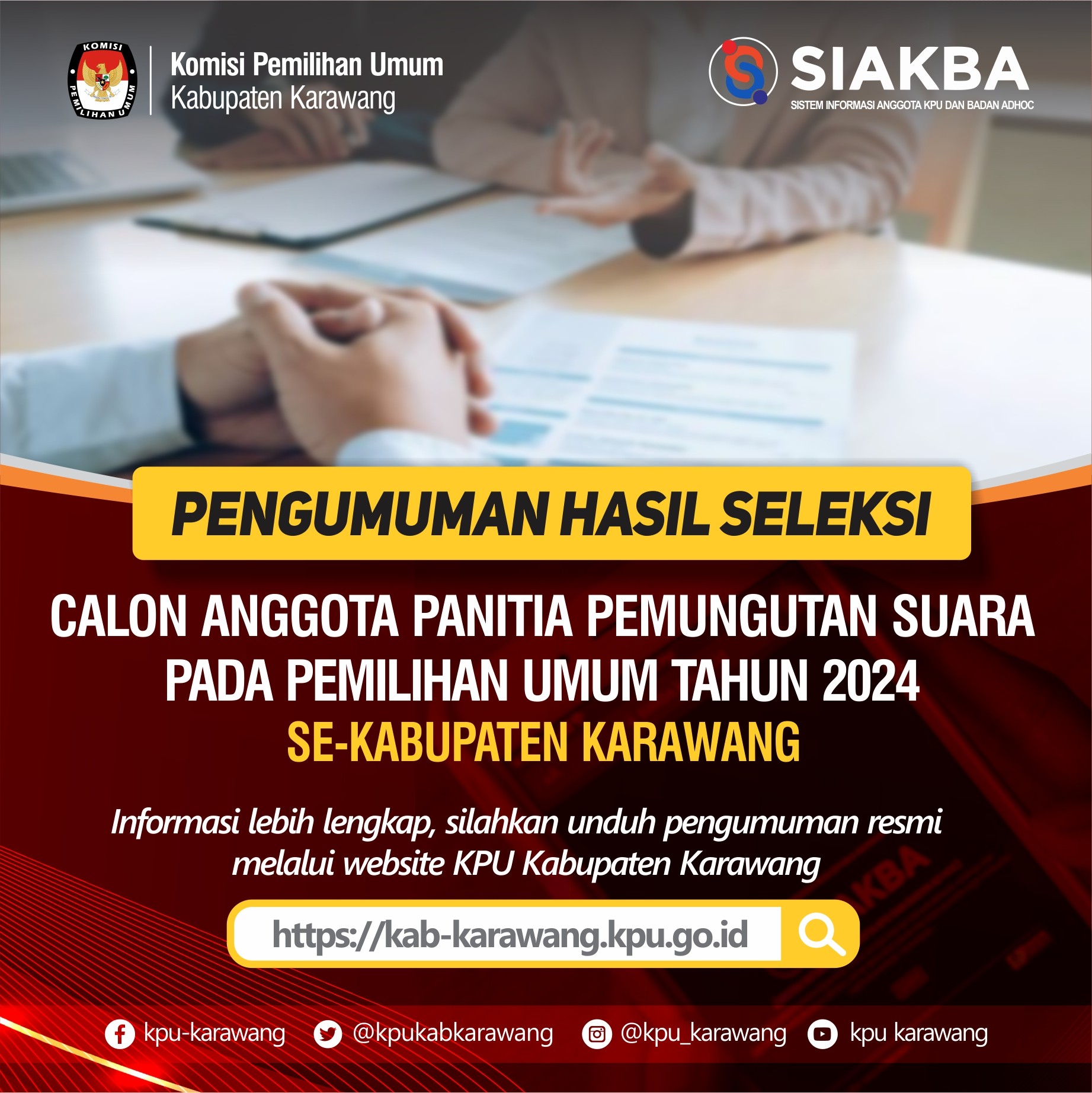 PENGUMUMAN PENETAPAN HASIL SELEKSI CALON ANGGOTA PPS PEMILU TAHUN 2024 SE KABUPATEN KARAWANG